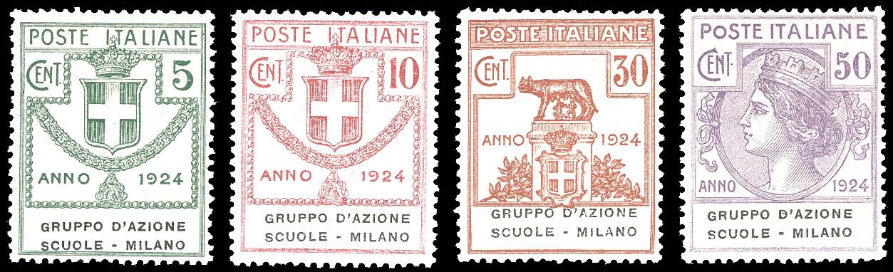 GRUPPO D'AZIONE SCUOLE-MILANO 1924 - Serie completa (38/41), ben centrati, gomma originale integra, perfetti. Molto belli. Ferrario.