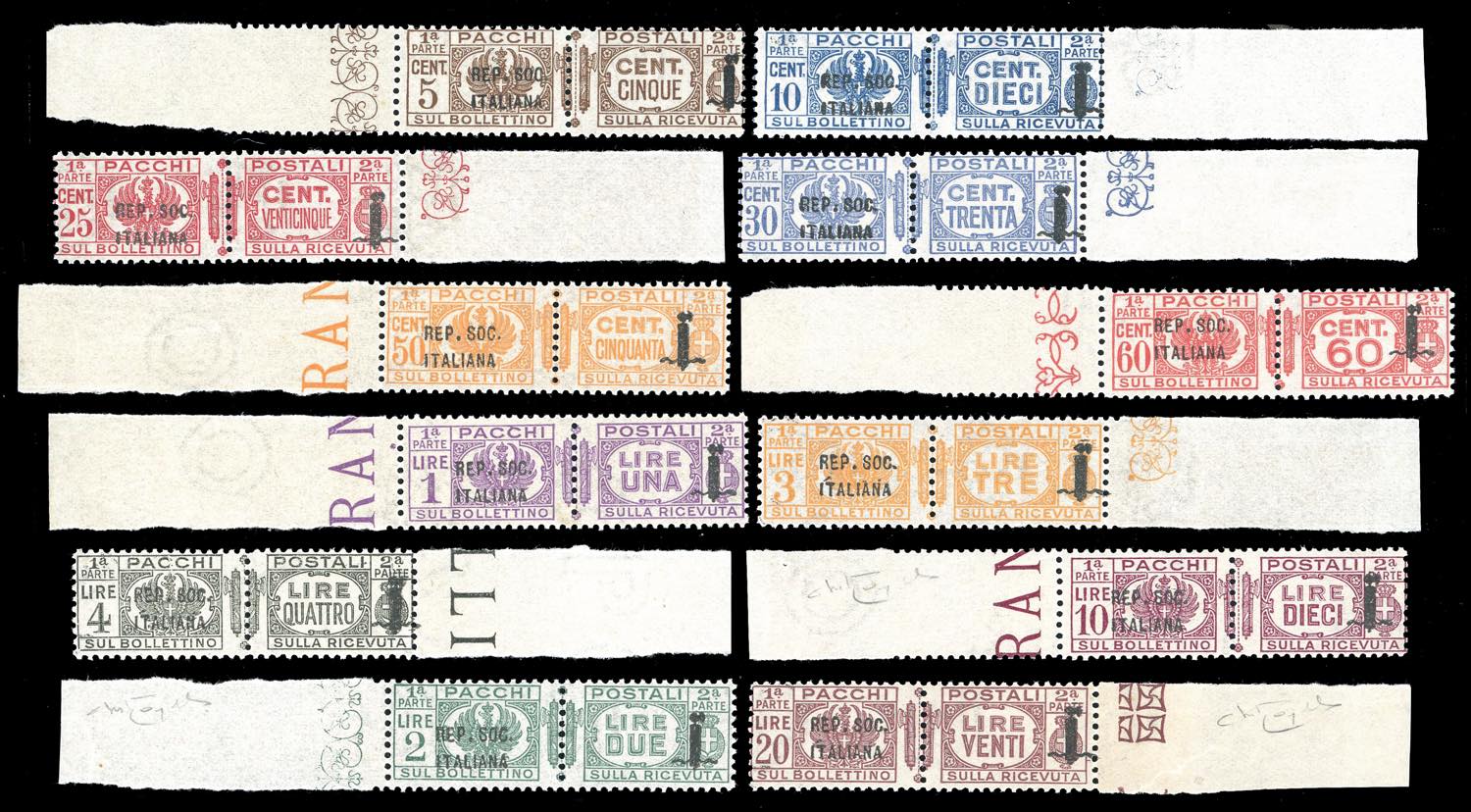 1944 - Soprastampati, serie completa (36/47), tutti bordo di foglio, nuovi, gomma originale integra, perfetti e molto freschi. Eccellente qualità. Cert. Raybaudi per gli alti valori.