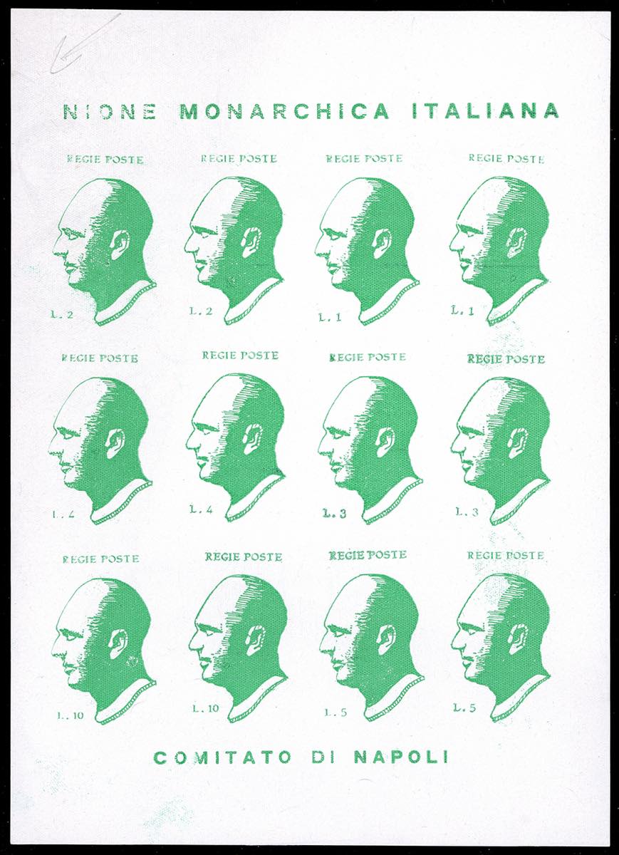 UNIONE MONARCHICA ITALIANA 1946 - Umberto II, foglietto completo di dodici esemplari, non dentellato, varietà mancanza della lettera "U" ... Leggi tutto