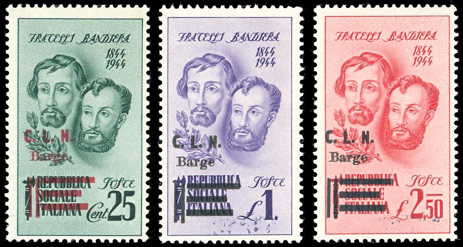 BARGE 1945 - Fratelli Bandiera, serie completa (9/11), nuovi, gomma originale integra, perfetti. Ferrario.