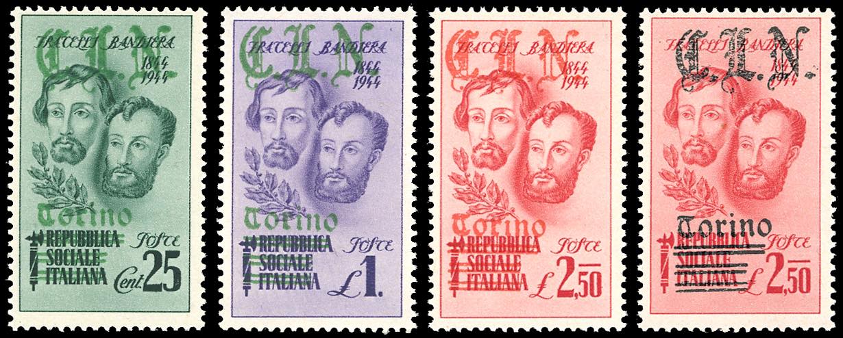 TORINO 1945 - Fratelli Bandiera, 25 e 50 cent. soprastampa verde anziché rossa, 2,50 lire, un esemplare con soprastampa rossa anziché ... Leggi tutto