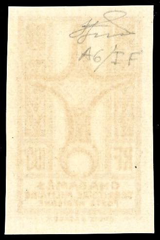 GHADAMES POSTA AEREA 1949 - 100 f. bruno arancio e arancio, errore di colore, non dentellato (A6/IF), nuovo, gomma originale integra, perfetto e molto fresco. Pochissimi esemplari noti. Rarità. Cert. Ferrario.