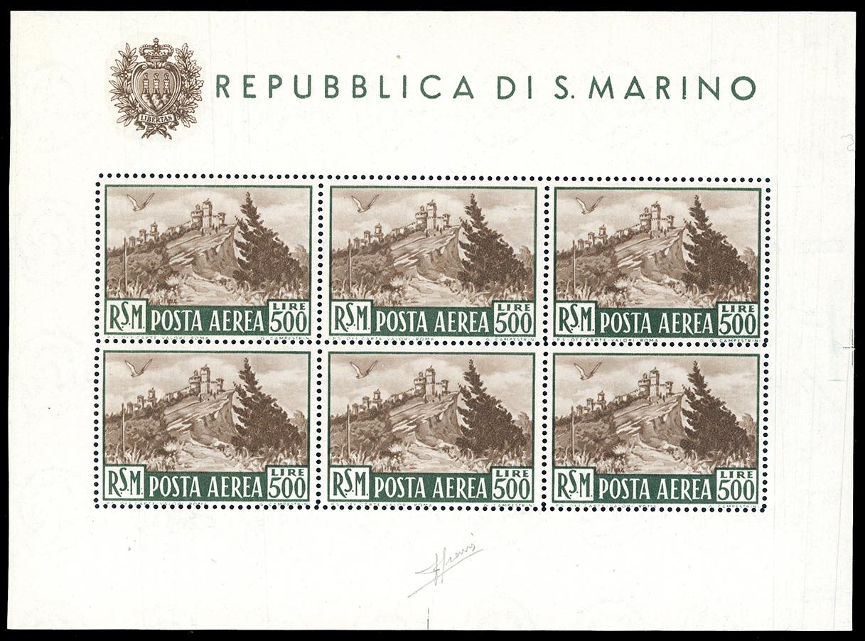 1951 - 500 lire Veduta, foglietto (12), nuovo, gomma originale integra, perfetto. Cert. Sorani.