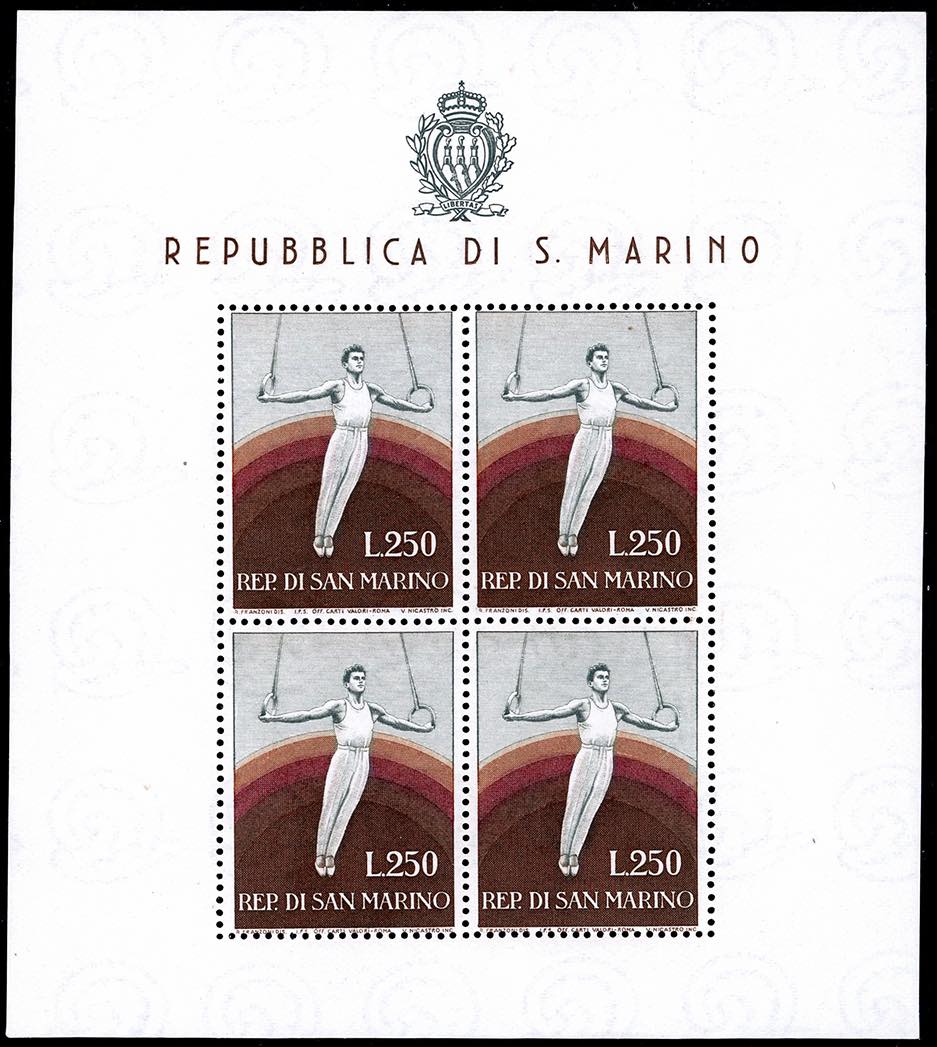 1955 - 250 lire Ginnasta, foglietto (17), nuovo, gomma originale integra, perfetto. Ferrario.