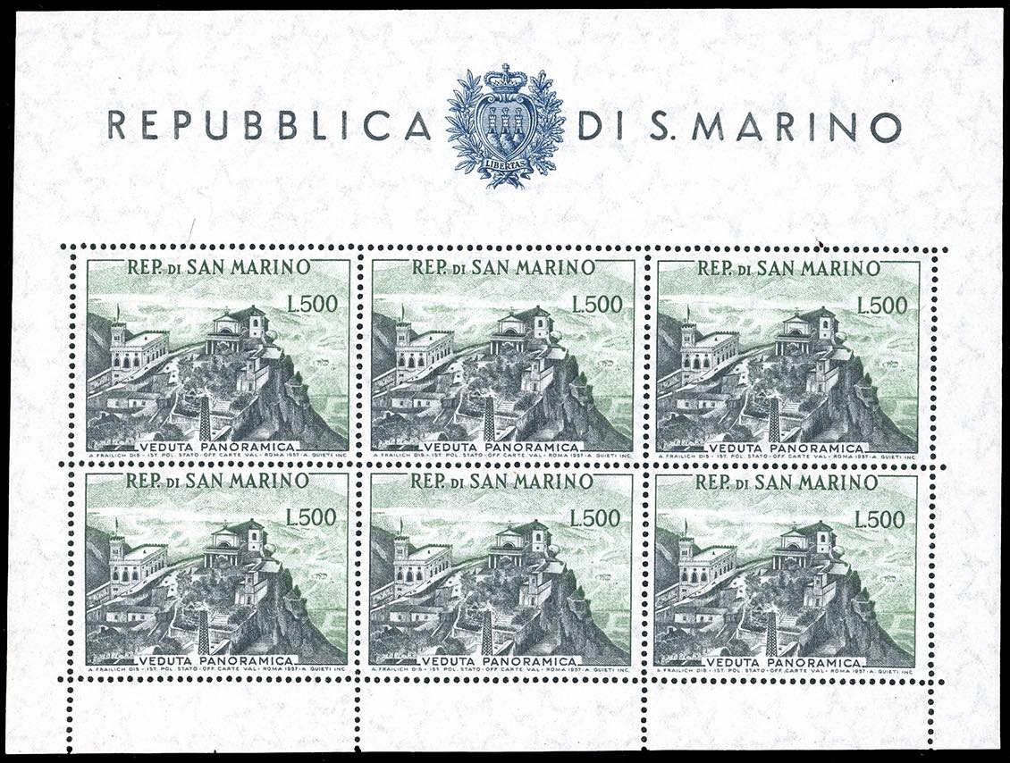 1958 - 500 lire Panorama, foglietto (18), nuovo, gomma originale integra, perfetto. Cert. Ferrario.