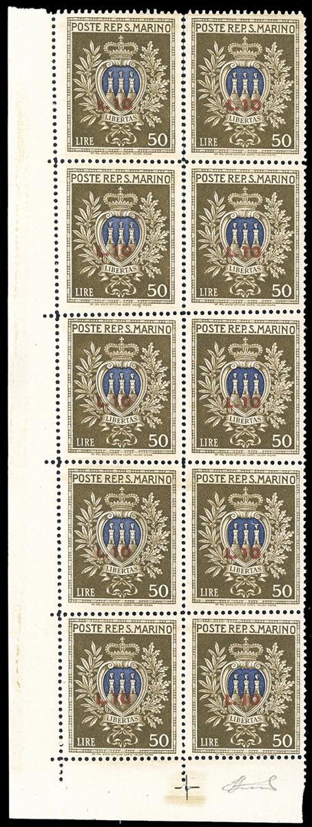 Lotto 2259 - 1946 - 10 lire su 50 lire Pro Opere Assistenza, minifoglio ...