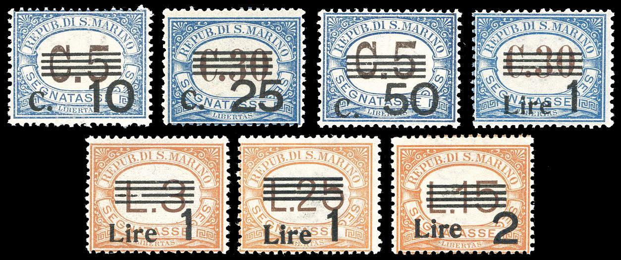 1936/39 - Soprastampati, serie completa (47/53), nuovi, gomma originale integra, perfetti. Ferrario.