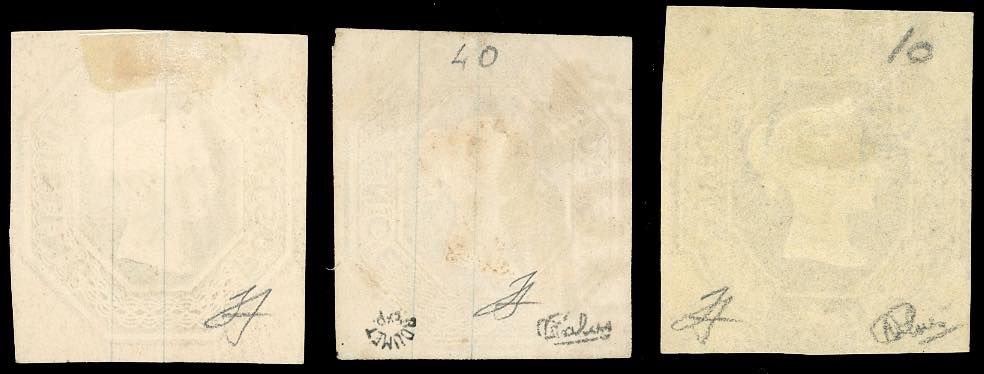 GRAN BRETAGNA 1847/54 - 6 p. violetto, 10 p. bruno rosso e 1 s. verde, Regina Vittoria (Unif.5/7), usati, perfetti. Ferrario.