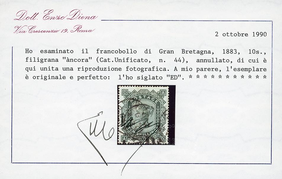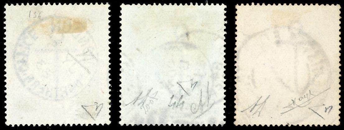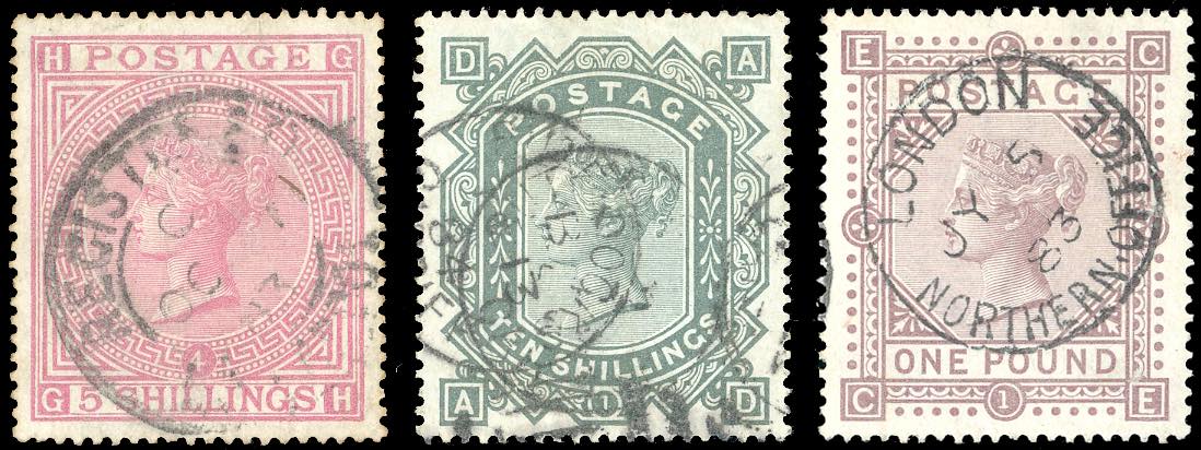 GRAN BRETAGNA 1882/83 - Regina Vittoria, filigrana ancora, carta bianca, serie completa (43a/45a), usati, perfetti. Rari. Cert. E.Diena.