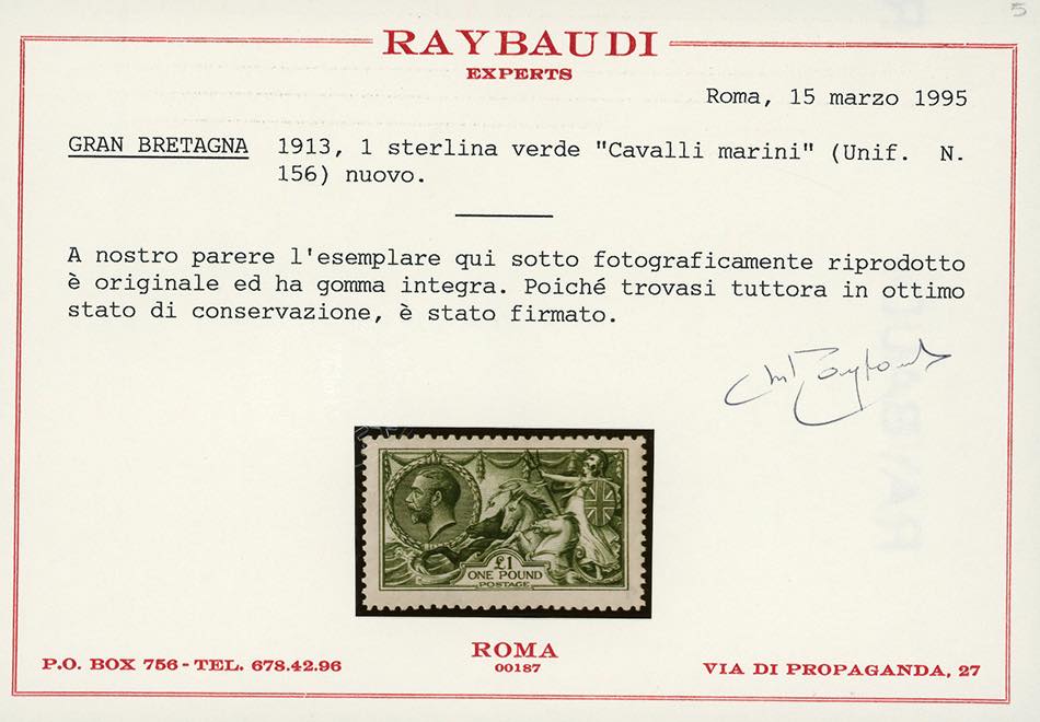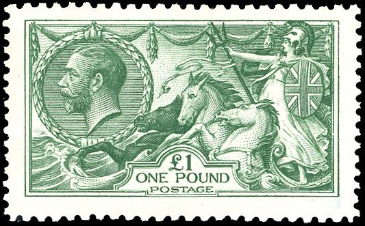 GRAN BRETAGNA 1913 - 1 £ Cavalli Marini (156), nuovo, gomma originale integra, perfetto. Molto bello. Cert. Raybaudi.