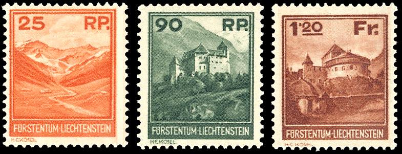 Lotto 2368 - LIECHTENSTEIN 1933 - Vedute, serie completa (111/113), ...