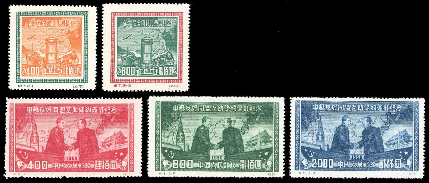 1950 - Two complete sets (Mi.82/83,84/86), no gum as issued, unmounted, perfect conditions.