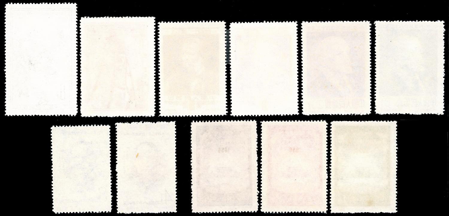 1955/1956 - Five complete sets of the period (Mi.282/283,284/285,286/287,325/327,328/329), without gum as issued, unmounted, perfect conditions.