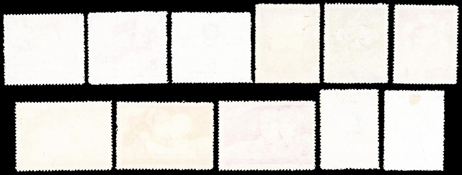 1958 - Four complete sets of the period (Mi.392/394,398/399,402/404,413/415), without gum as issued, perfect conditions, very fine.