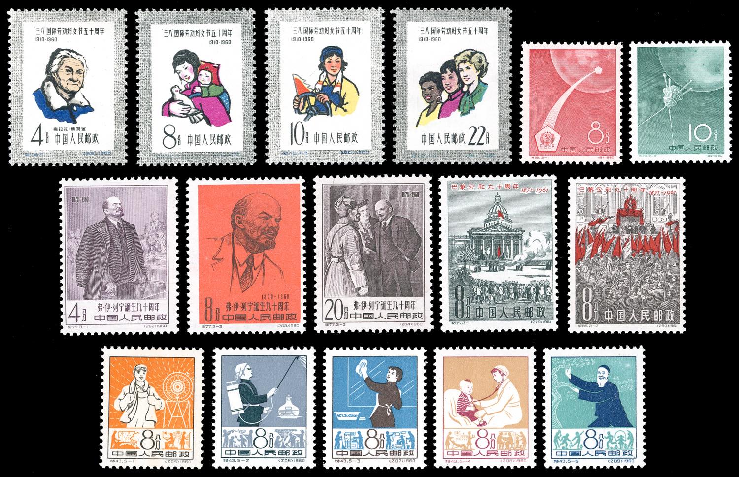 1960/1961 - Five complete sets (Mi.518/521,527/529,530/531,559/663,589/590), full original gum, MNH, perfect conditions.