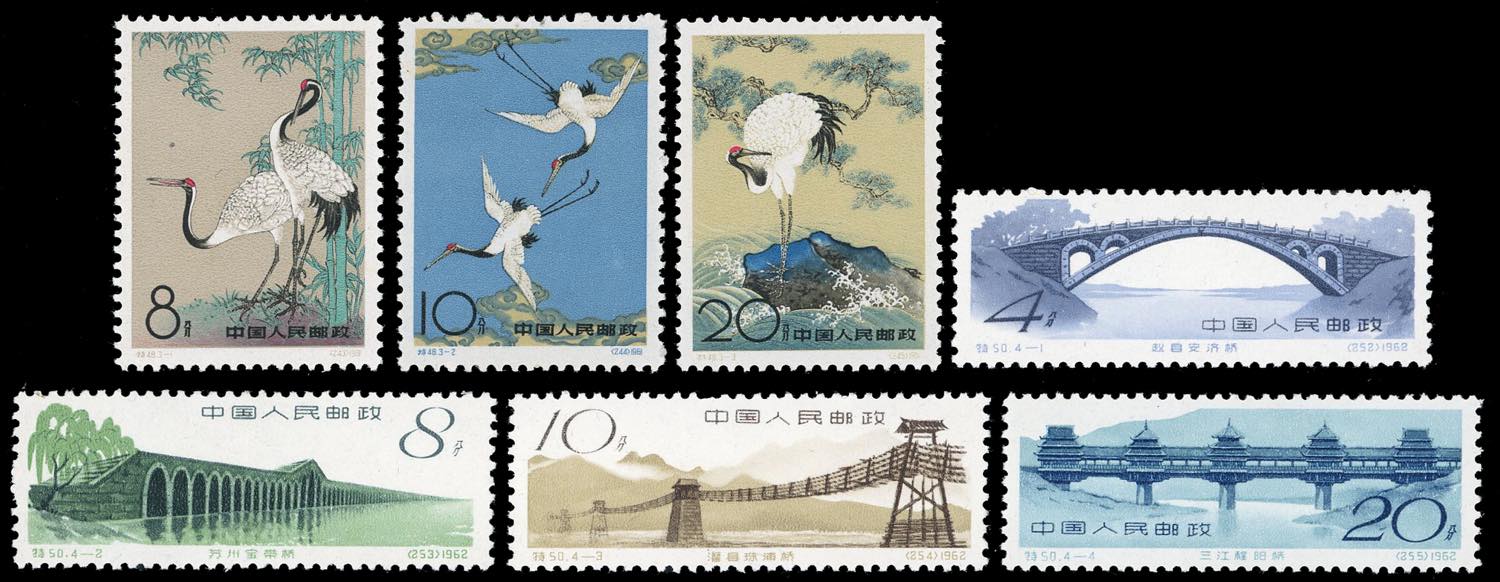 1962 - Bridges and Chen Chi-Fo paintings, complete sets (Mi.622/625,640/642), full original gum, MNH, perfect conditions, very fine.
