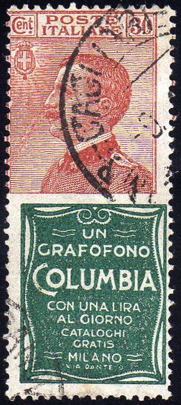 1924 - 30 cent. Columbia, vignetta fortemente spostata (9b), usato, perfetto. Raro e non catalogato allo stato di usato. Ferrario.