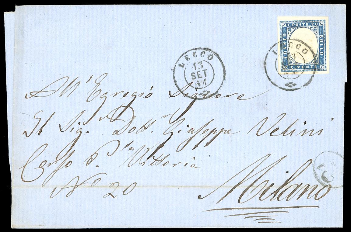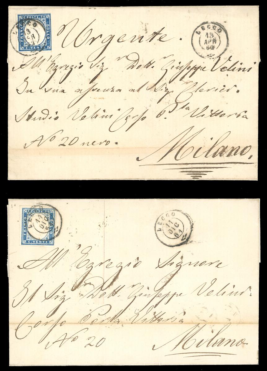 LOMBARDO VENETO/REGNO D'ITALIA 1850/1865 - Bell'insieme di francobolli sciolti e lettere affrancate, tutte con annulli di Lecco. Qualità ... Leggi tutto