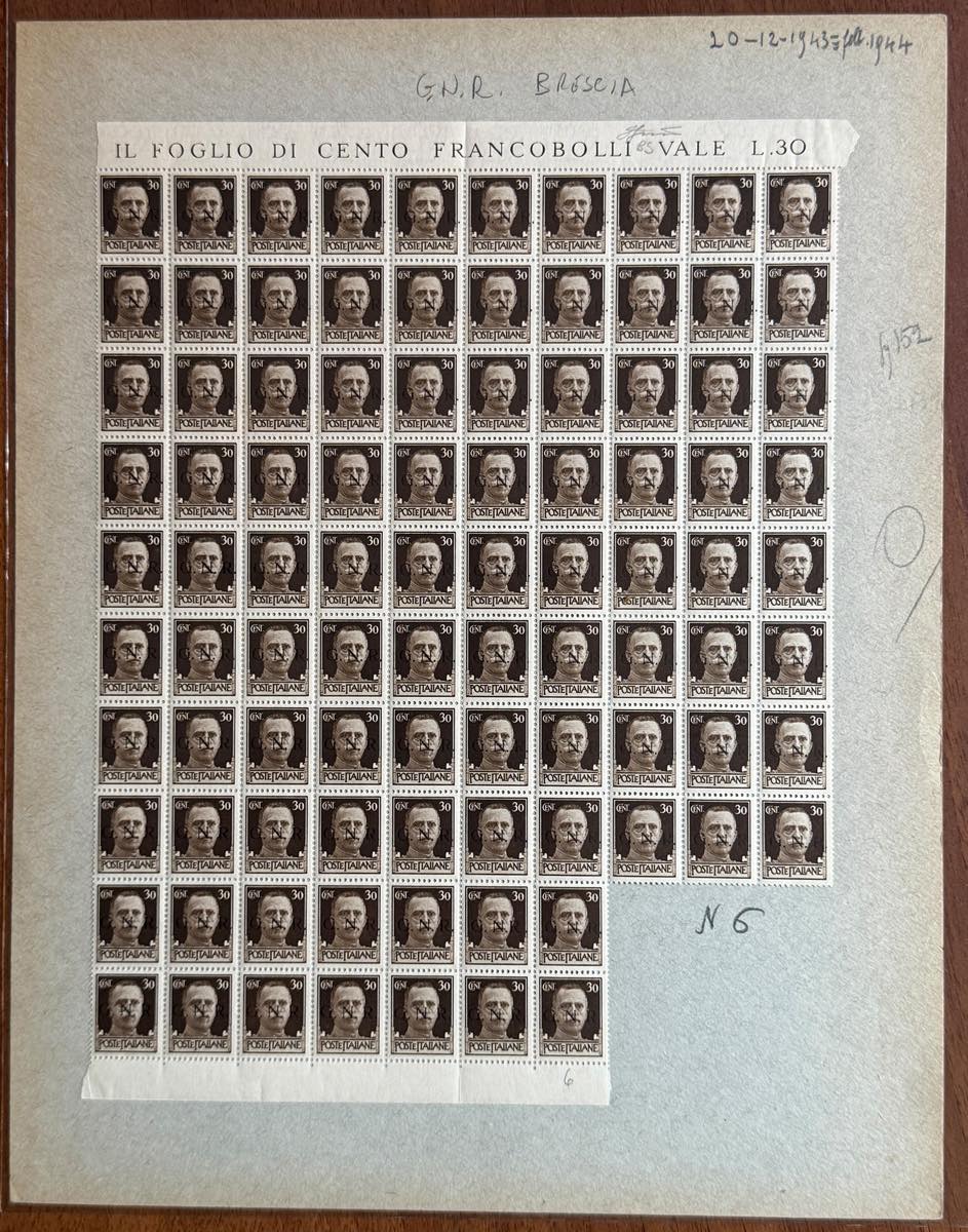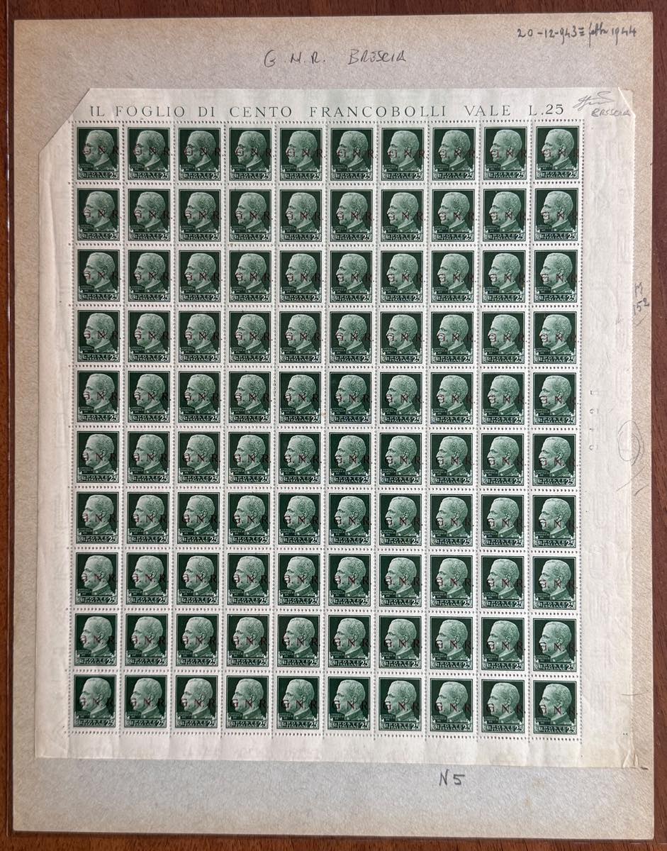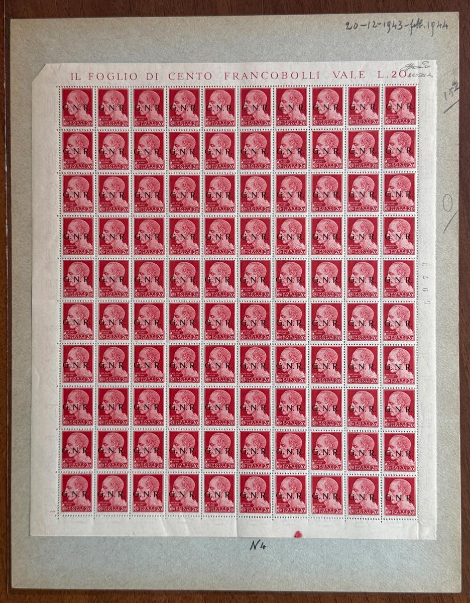 REPUBBLICA SOCIALE ITALIANA 1943 - Soprastampati G.N.R., tiratura di Brescia, splendido insieme di blocchi e fogli (firmati Ferrario), ... Leggi tutto