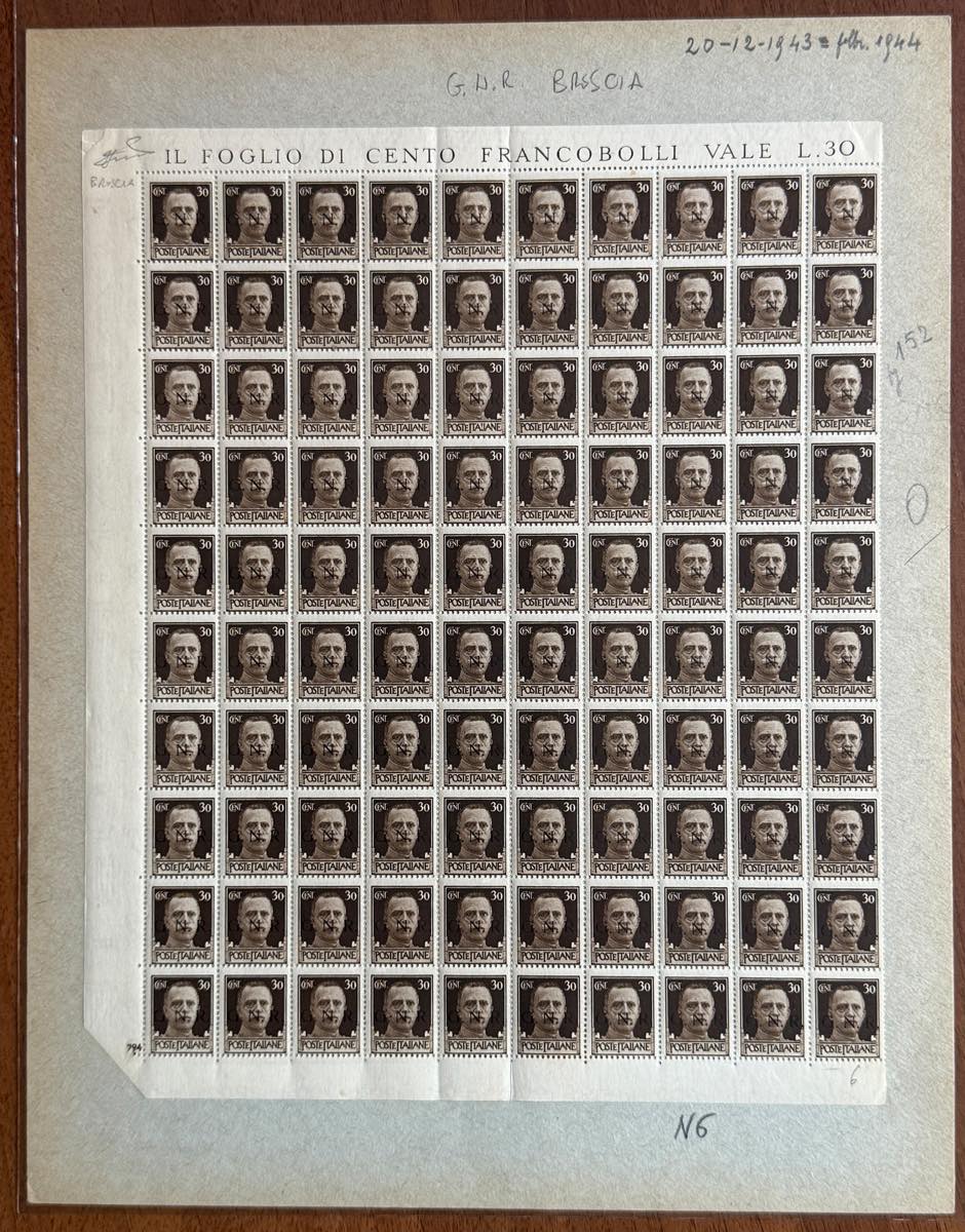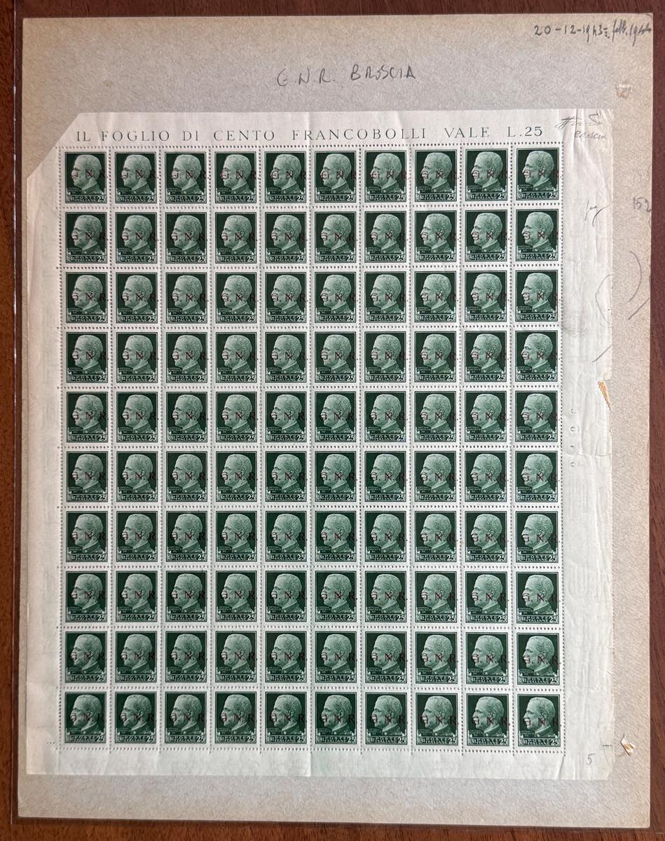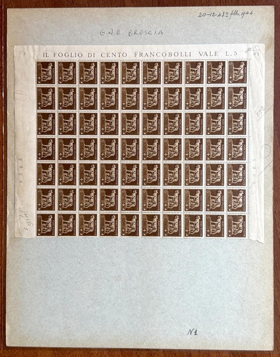 REPUBBLICA SOCIALE ITALIANA 1943 - Soprastampati G.N.R., tiratura di Brescia, splendido insieme di blocchi e fogli (firmati Ferrario), ... Leggi tutto