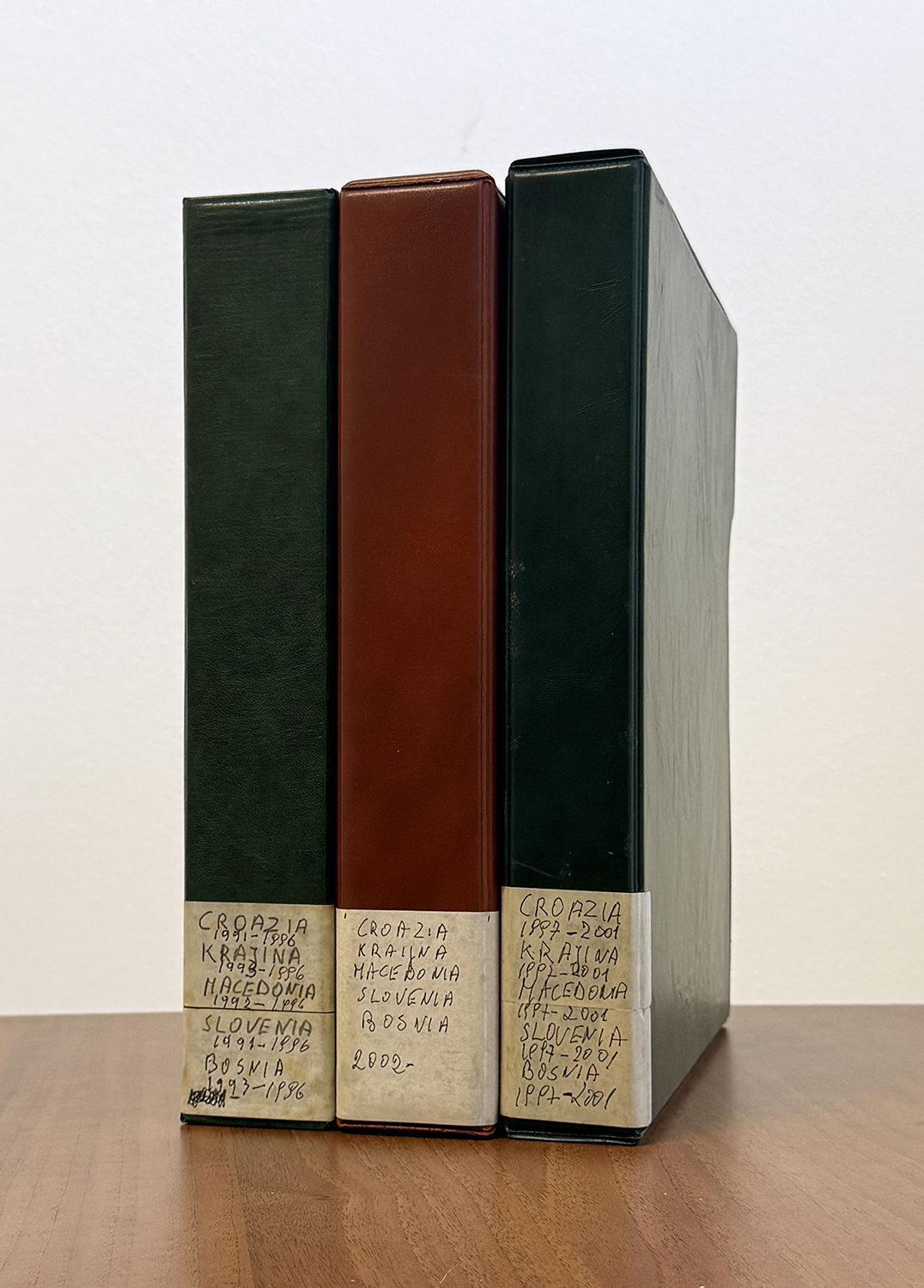 CROAZIA 1991/2003,BOSNIA 1993/2003,MACEDONIA 1992/2003,SLOVENIA 1991/2003 - Le quattro collezioni complete di francobolli, foglietti e libretti nuovi del periodo, gomma integra, in 3 album Marini. Ottima qualità.