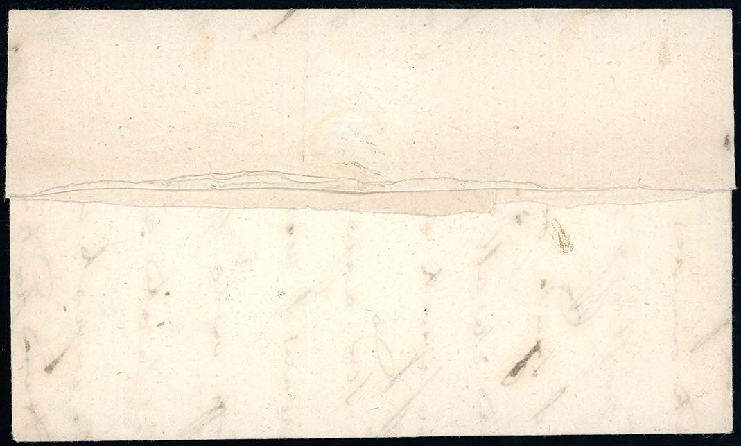 1855 - 5 cent. verde, punto dopo le cifre (7), perfetto, isolato su fresca lettera da Modena 2/1/1855 a La Mirandola. Il francobollo fu annullato due volte, sia con il bollo nero che con quello azzurro a sei sbarre di Modena. Spettacolare ed UNICO CASO NOTO, finora inedita e non catalogata. Cert. Ferrario.