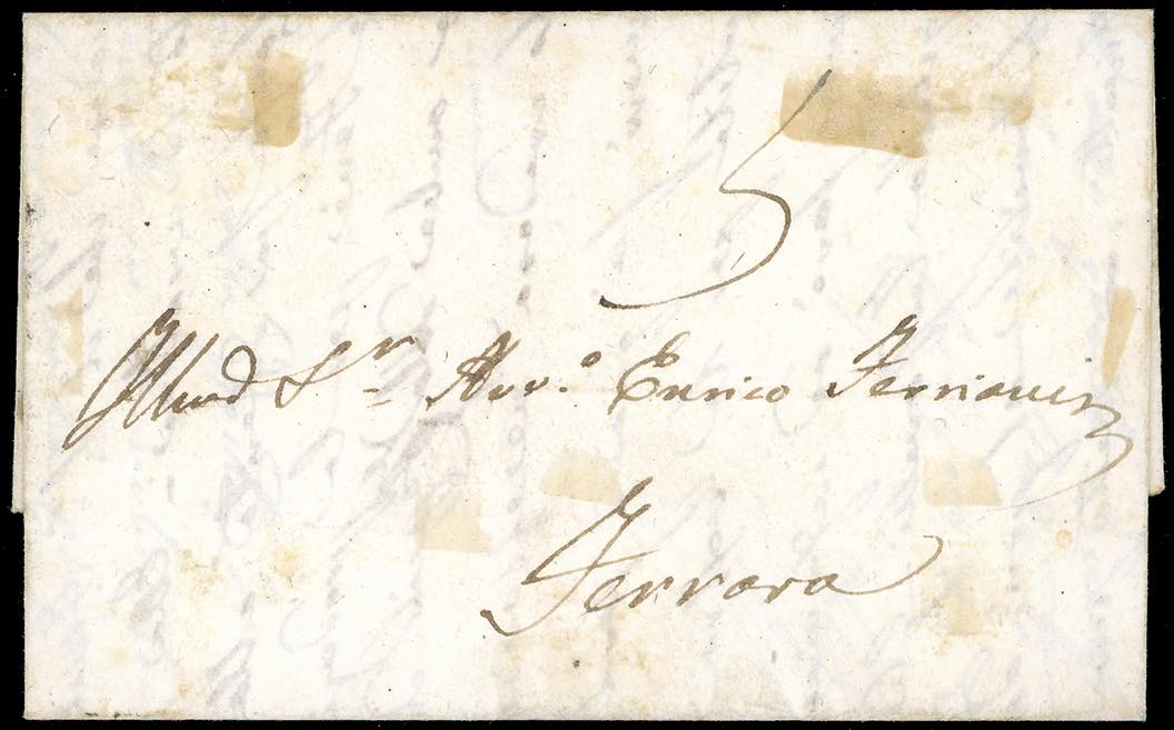 1859 - 1/2 baj giallo paglia (1), coppia, perfetta, al verso di lettera in porto assegnato da Codigoro 13/12/1859 a Ferrara, tassata 5 ... Leggi tutto