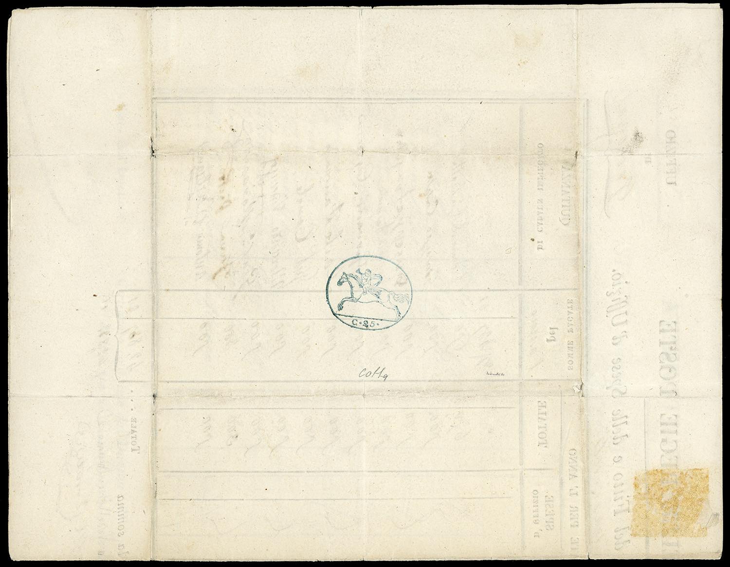 1819 - 25 cent. Cavallino, impressione a stampa, doppio foglio con stampa tipografica dell'Amministrazione delle Poste Regie, compilato ... Leggi tutto