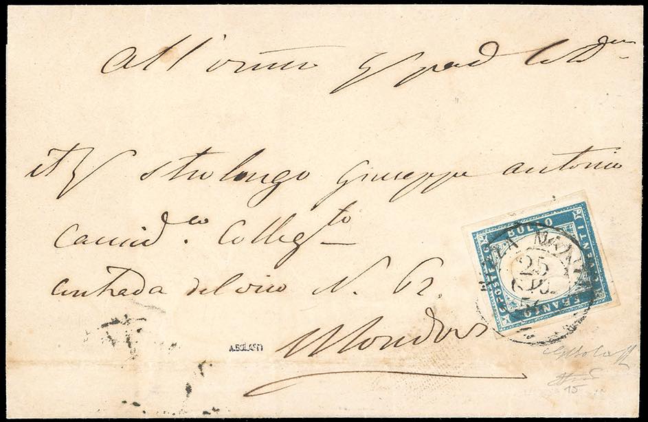 Lotto 629 - 1856 - 20 cent. cobalto (15), perfetto, su lettera da Nizza ...