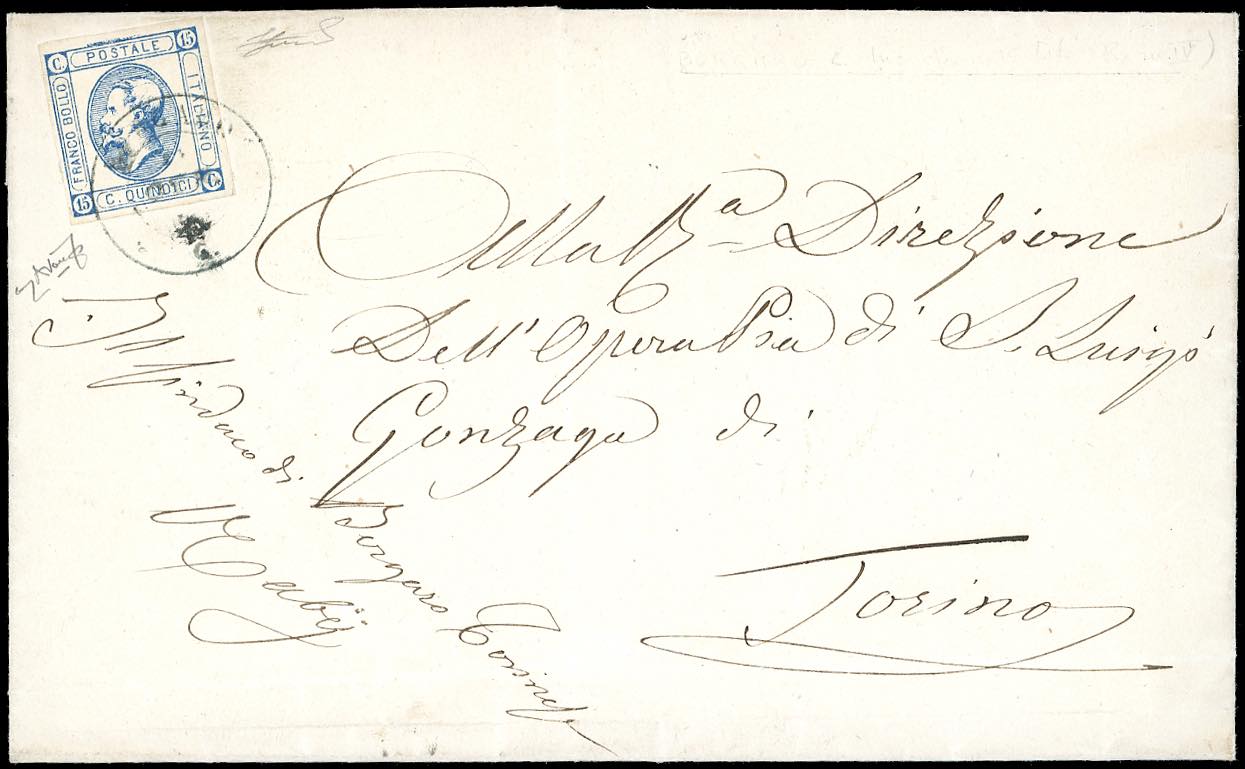 PIEMONTE-BORGARO, punti R1 - 15 cent. (13), perfetto, su sovracoperta di lettera del 20/10/1863 per Torino. UNICO CASO NOTO di questo raro ... Leggi tutto