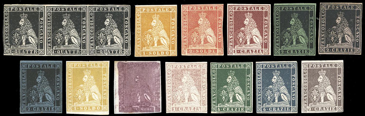 Lotto 842 - 1851 - Tre fogli da esposizione con 29 prove di stampa, in ...