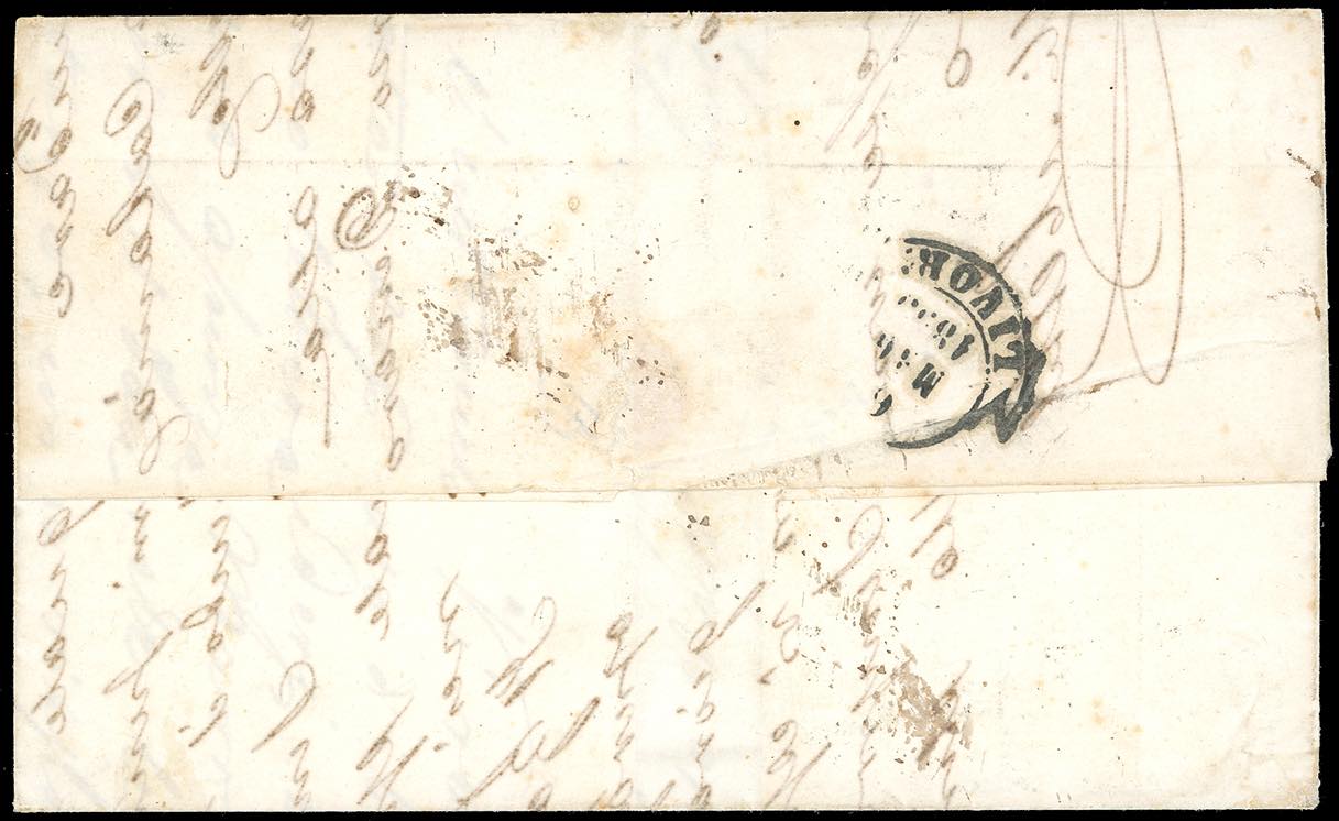 1859 - 9 crazie bruno violaceo su grigio (8), due esemplari, uno perfetto, l'altro corto a sinistra, su lettera inizialmente affrancata con 15 kr. Azzurro di Austria (Unificato 16), ora ricoperto, da Trieste maggio 1859 a Livorno, dove venne riaffrancata il 6/5/1859 prima di essere rispedita a Catania con i vapori postali francesi, sul fronte transito di Messina 11/5/1859 e tassa 66 grana. Affrancatura mista di rispedizione estremamente rara in periodo di Governo Provvisorio. Chiavarello, Ferrario.