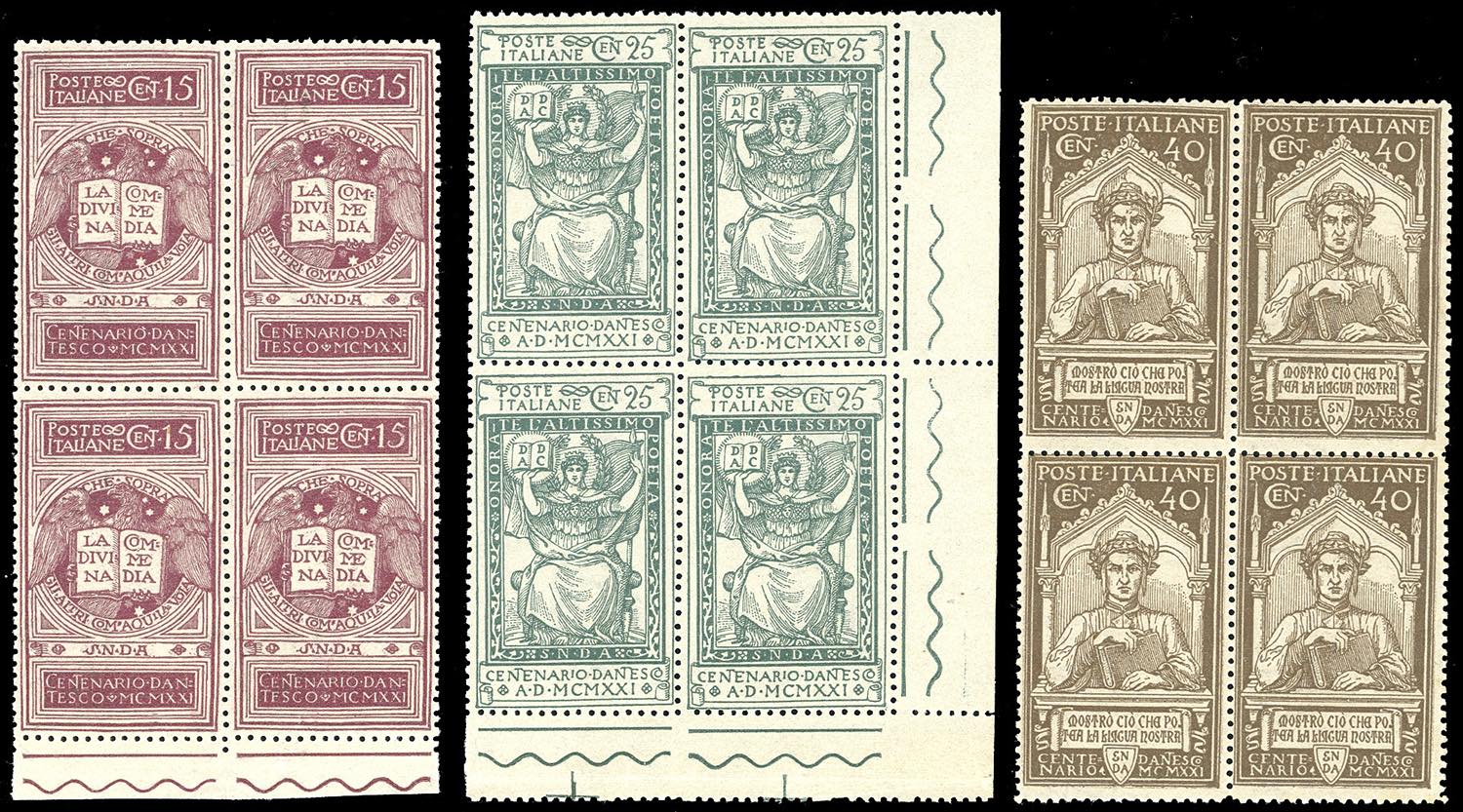 Lotto 1126 - 1921 - Dante, serie completa (116/118), blocchi di quattro, ...