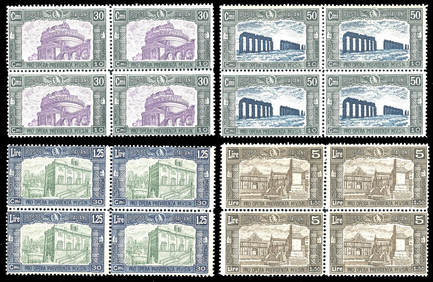 1930 - Milizia III, serie completa (272/275), blocchi di 4, gomma originale integra, perfetti.