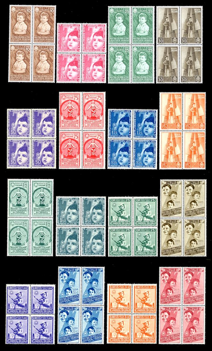 Lotto 1227 - 1937 - Colonie Estive, serie completa (406/415+A), blocchi ...