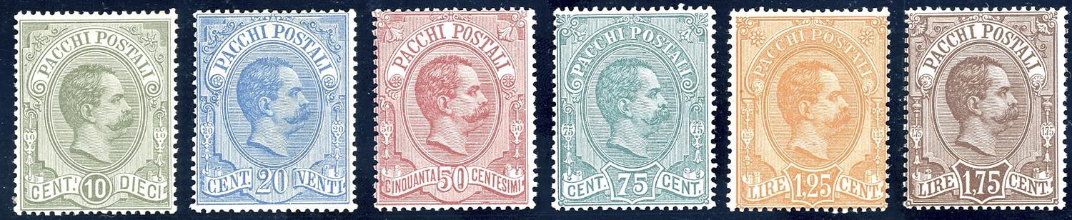1884/86 - Umberto I, serie completa (1/6), discreta centratura, gomma originale, perfetti. Belli.