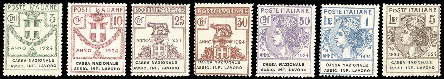 CASSA NAZIONALE ASSIC.INF.LAVORO 1924 - Serie completa (17/23), nuovi, gomma originale integra, perfetti. Ferrario.
