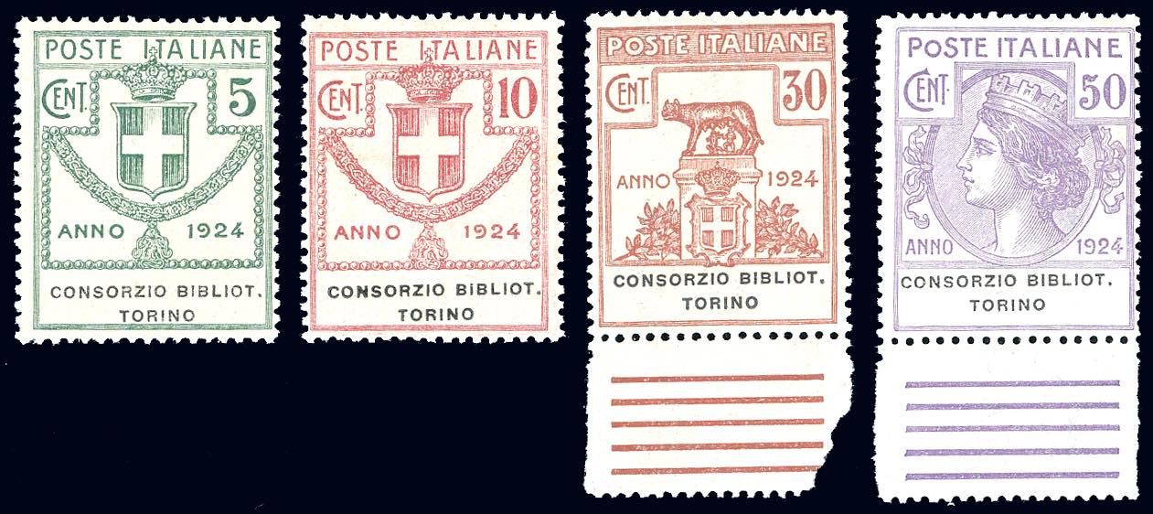 CONSORZIO BIBLIOT.TORINO 1924 - Serie completa (30/33), nuovi, gomma originale integra, perfetti, centratura sopra la media. Ferrario.