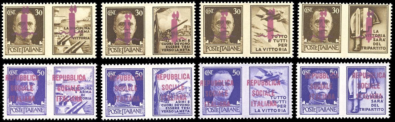 1944 - 30 cent. e 50 cent. soprastampati su entrambe le sezioni in lilla, serie completa di otto valori (41/I-48/I), nuovi, gomma originale ... Leggi tutto