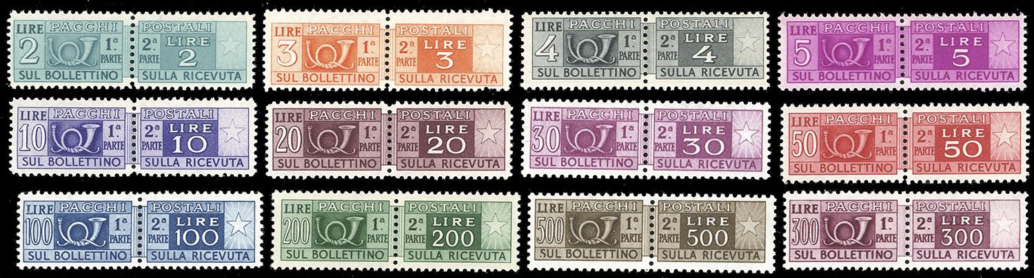 1946/51 - Filigrana ruota, serie completa (66/80), buona centratura, nuovi, gomma originale integra, perfetti. Cert. Oro Raybaudi per il 300 lire.