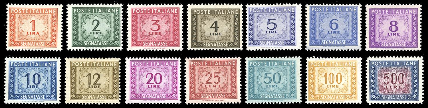 1947/54 - Filigrana ruota, serie completa (97/110), nuovi, gomma originale integra, perfetti. Alti valori Ferrario.