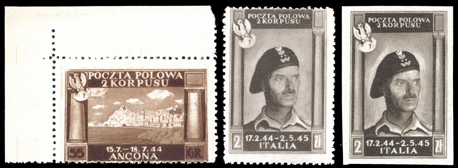 1946 - 55 g. e 2 z., un esemplare dentellato e uno non dentellato, Vittorie polacche, carta bianca (15,16,16A), senza gomma come sempre, perfetti.