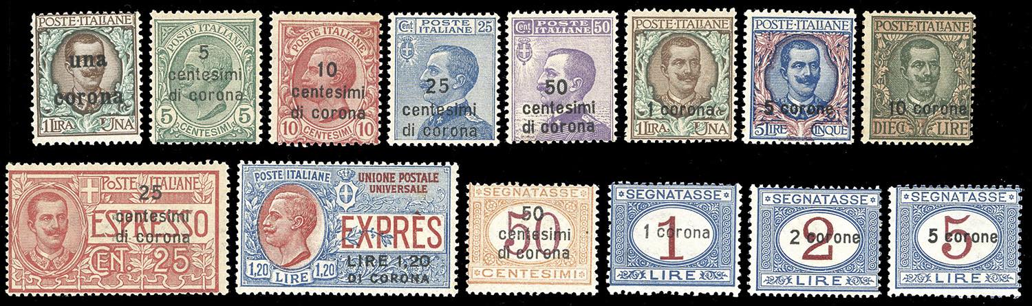 DALMAZIA 1919/22 - Giro completo delle emissioni di posta ordinaria e servizi (1,2/8,E1/1,T1/4), nuovi, gomma originale integra, perfetti e ... Leggi tutto
