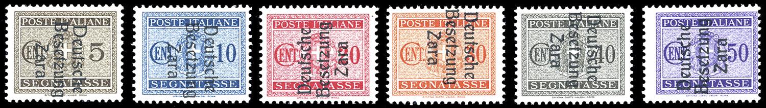 OCCUPAZIONE TEDESCA ZARA SEGNATASSE 1943 - Soprastampati, serietta di 6 valori (1/3,5/7), gomma originale integra, perfetti e di ottima qualità.