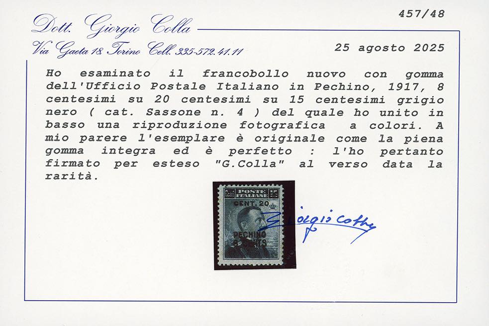 Lotto 2163 - PECHINO 1917 - 8 cent. su 20 cent. Michetti, soprastampa ...