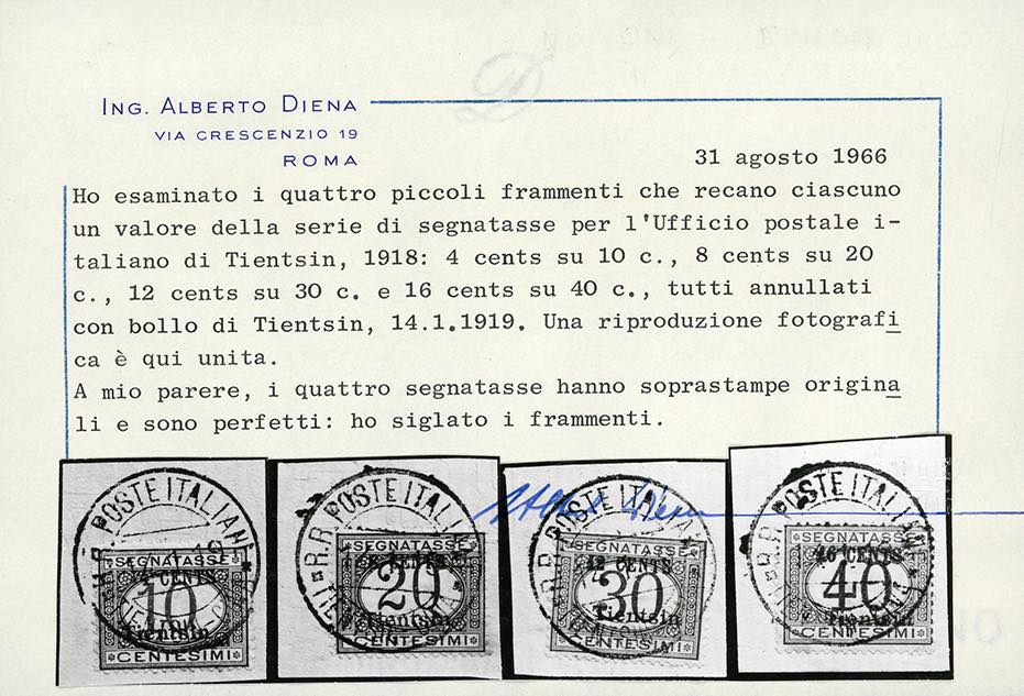 Lotto 2187 - TIENTSIN SEGNATASSE 1918 - Soprastampati con nuovo valore, ...