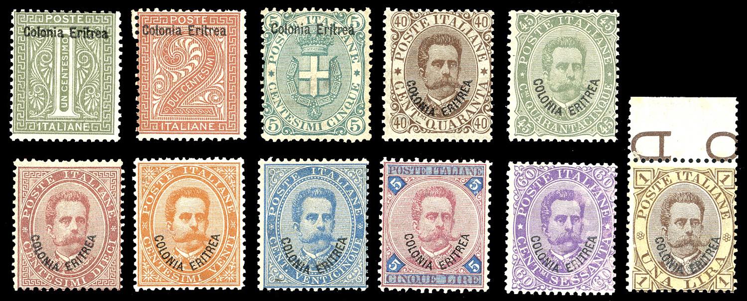 1893 - Prima emissione, soprastampati, serie completa (1/11), nuovi, gomma originale, lieve traccia di linguella, perfetti. Alcuni valori ... Leggi tutto
