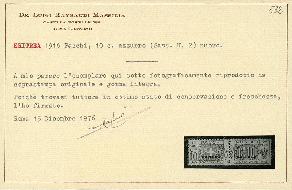 Lotto 2308 - PACCHI POSTALI 1916 - 10 cent. soprastampato in caratteri ...