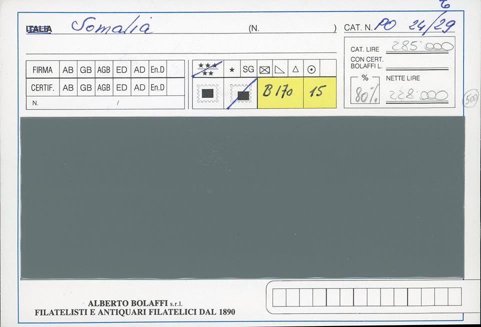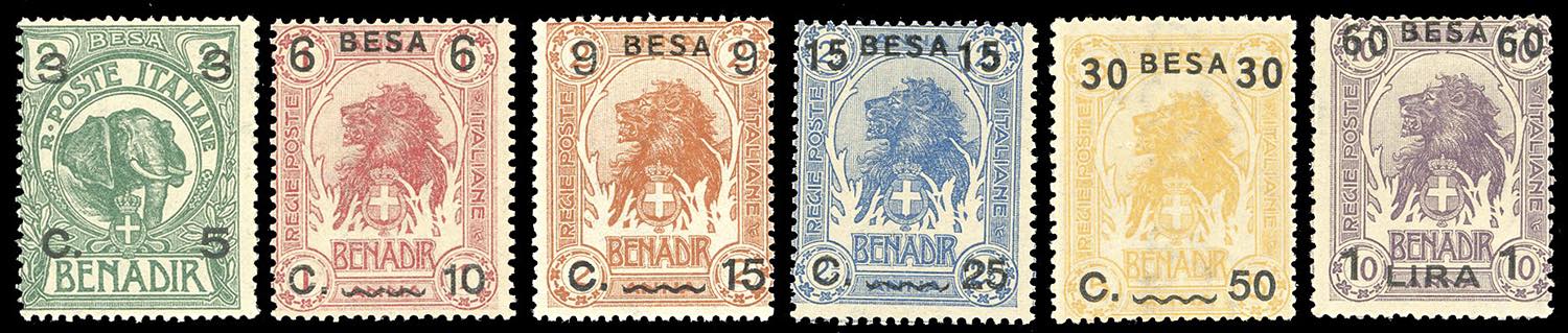 1922 - Soprastampati in moneta somala, serie completa (24/29), nuovi, gomma originale integra, perfetti.