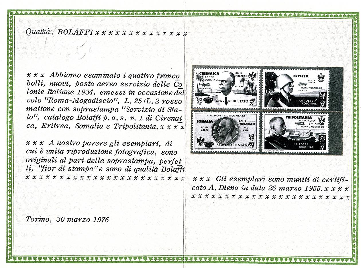 SERVIZIO AEREO 1934 - 25 + 2 lire Coroncina (1), gomma originale integra, perfetto. Ottima qualità. Fotocopia cert. Bolaffi, cert. ... Leggi tutto